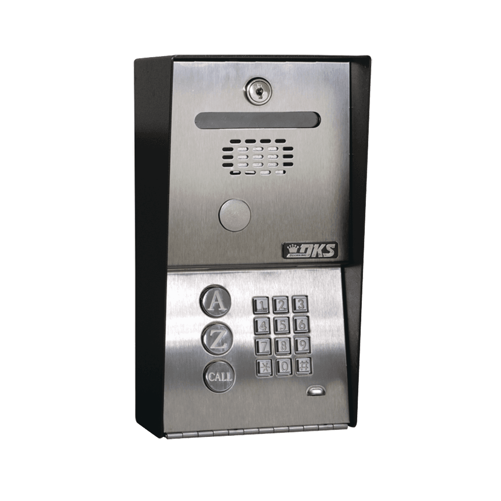 Audioportero Telefónico DKS Con Directorio / 100 Números Telefónicos / Control Para 2 Puertas / Gabinete Para Sobreponer / Marcación a 16 Digitos / Linea análoga o digital. Marca: DKS DOORKING. Modelo: 1802-090.
