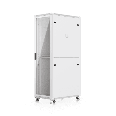 UACC Rack Cabinet 42U (600 × 1000 mm) – Gabinete de Piso Totalmente Ensamblado con Ventiladores Integrados, Paneles Removibles, Ruedas con Seguro y Puerta Frontal de Vidrio Templado. Marca: UBIQUITI. Modelo: UACC-RACK-42U-1000-G.