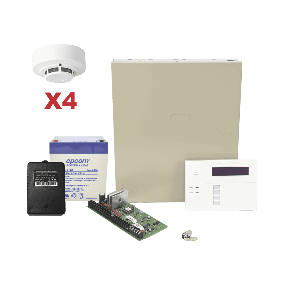 Kit de Panel de Alarma VISTA48LA con Gabinete, Batería y Transformador / 4 Sensores de humo. Marca: HONEYWELL HOME RESIDEO. Modelo: VISTA48LASMK/6160RF.